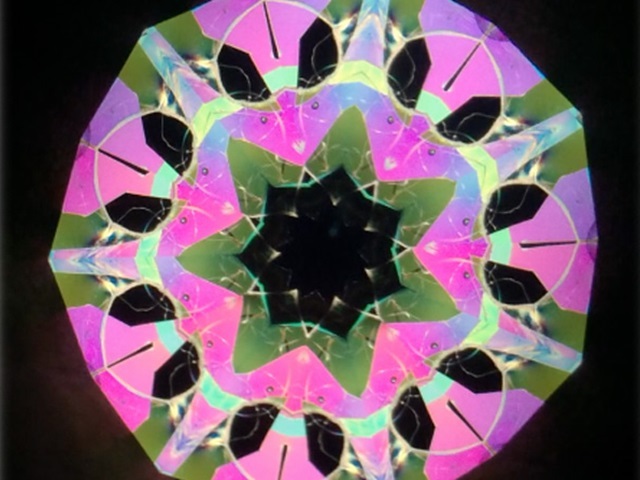 普通の万華鏡は透き通る素材を中に入れ、その素材の色の重なりを楽しむ感じですが、