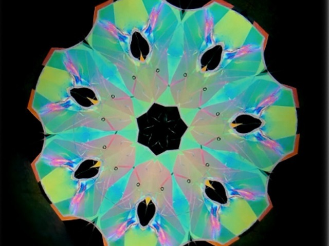 万華鏡作家、細野朝士さん制作の七角形ができる偏光万華鏡です。