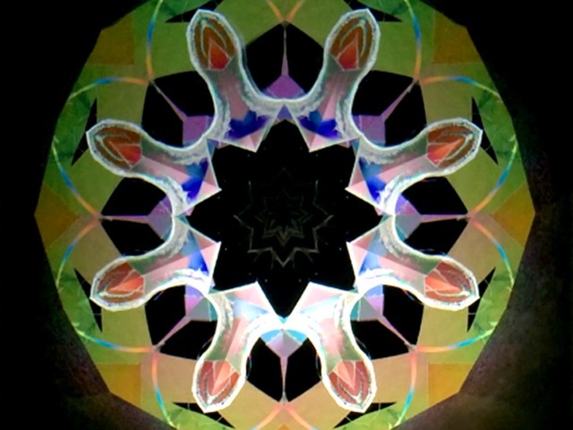 普通の万華鏡は透き通る素材を中に入れ、その素材の色の重なりを楽しむ感じですが、