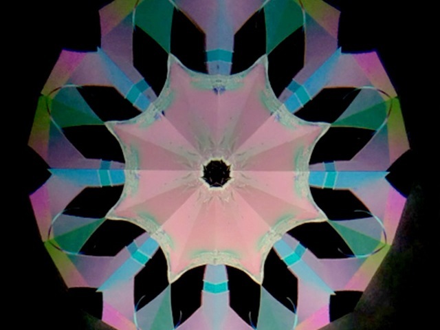 万華鏡作家、細野朝士さん制作の八角形ができる偏光万華鏡です。