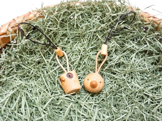 木の優しい手触りと香りを感じられるかわいい木製ストラップです。