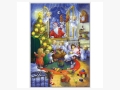 クリスマスの頃のさまざまな情景が描かれた絵の中に24個の小窓の切込みがあり