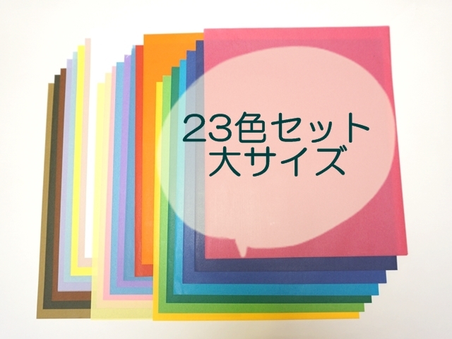 大サイズペーパーの23色が入っています。ホワイト6枚、その他の色は各3枚合計72枚入っています。