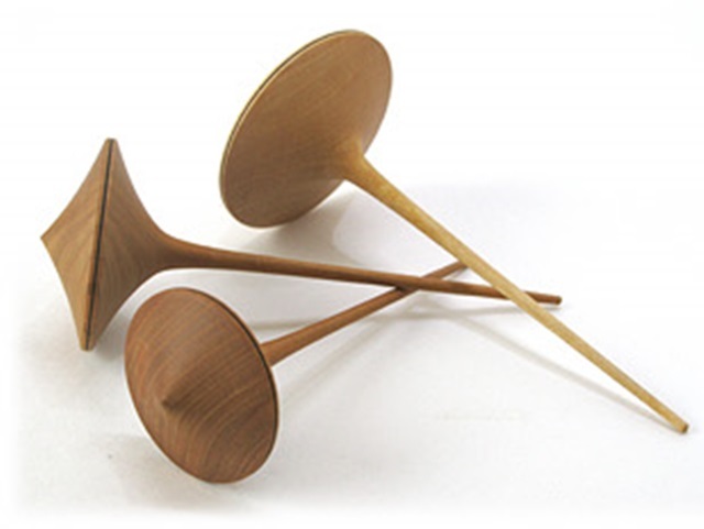 長い柄を持っていますが、こまの直径以上の木をこの柄の長さの分だけ轆轤で削り取っていったと考えると、