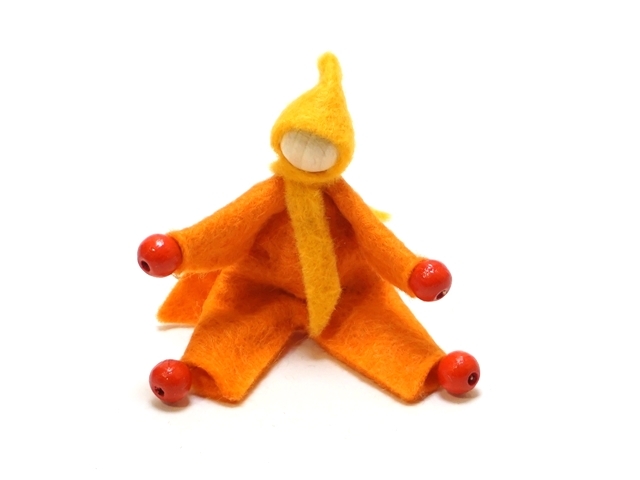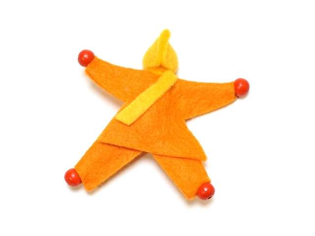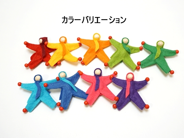 フェルトの服を着た人形で、体を自在に動かせます。