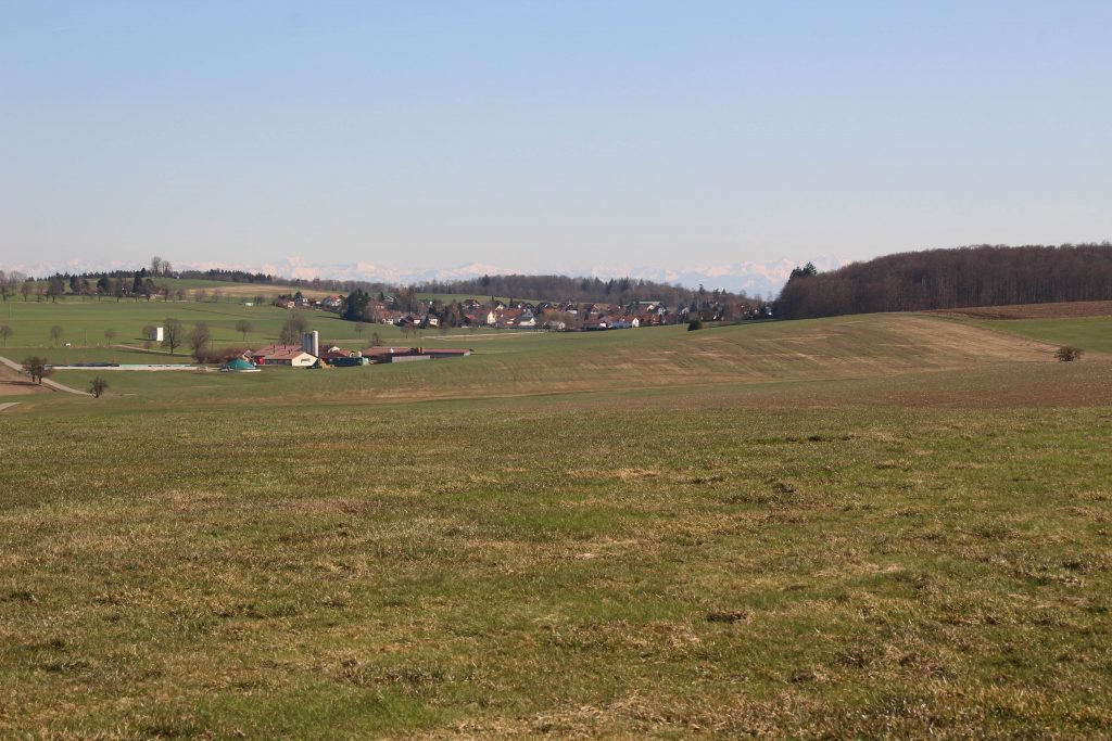 散歩に出かけると遠くにアルプスの山々を望むことができます。