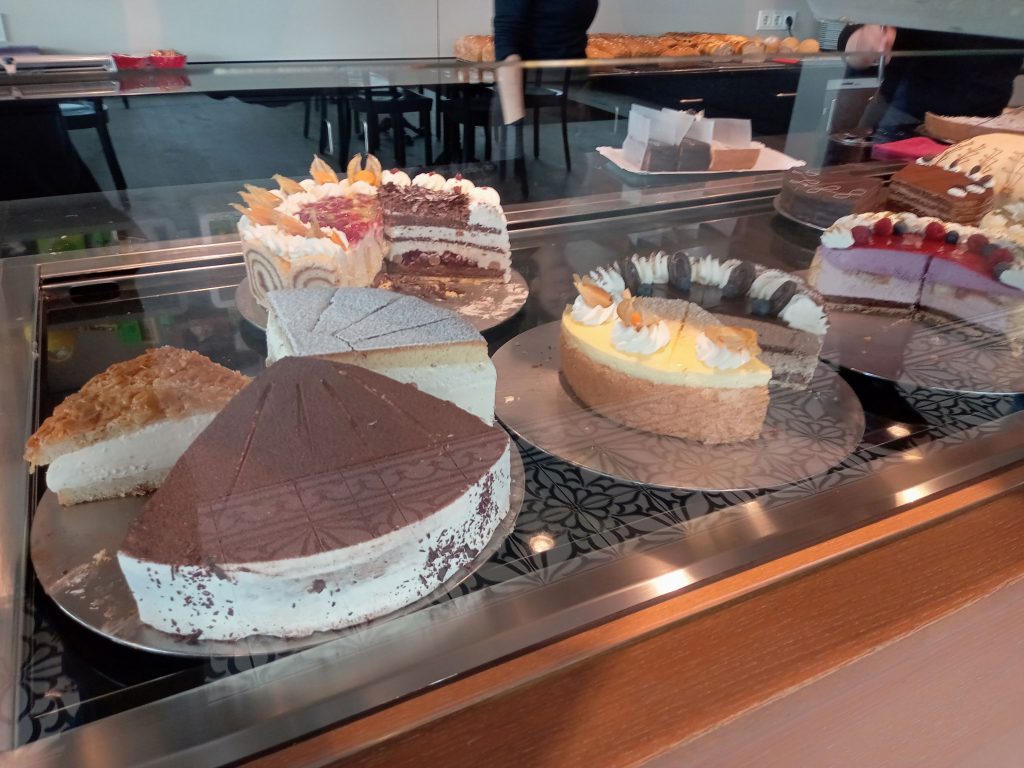 途中でシュバルツヴェルダーキルシュトルテを買いに行きます。
